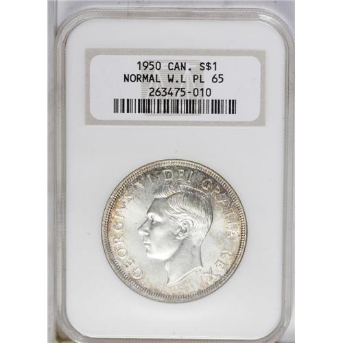 George VI Dollar 1950 Normal WL, KM46, PL65 NGC, beauti