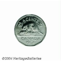 George VI High Relief 5 cent 1951, KM42a, MS65 PCGS. The unquestioned rarity of the modern 5 cent series. Almost all known Gem Uncirculated and Gem SPECIMEN examples of this rare type came from the former Royal Canadian Mint employee T. Roberts through John Jay Pittman. Pittman obtained a complete 40-piece roll from Roberts in 1951, at face value. Important notice: Heritage usually auctions material at the rate of 200-250 lots per hour. On some occasions eBay Live bid software or the Internet may not be able to keep up with the pace of the auction. We recommend placing a realistic absentee bid now as insurance to avoid disappointment. Occasionally the auctioneer may eliminate or reject an eBay Live bid, and the auctioneer may also reopen a lot after the close of the eBay live bidding (usually because we missed an audience bid), and may reject your bid even if it shows you as the winning bidder. By bidding via eBay Live, you agree that Heritage may award the lot to another bidder at its sole discretion under the circumstances described above or any other reasonable circumstances. Also please note that all Heritage lots purchased through eBay Live carry a 20% Buyer's Premium. Please make sure you read the Terms and Conditions before you bid.