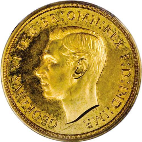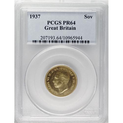 <B>George VI Proof Sovereign, 1937.</B></I> S-4076. 5,001 minted. PR64 PCGS. Original, light hazy surfaces, no cameo but very attractive. Rare.<BR><BR><b>Shipping:</b> Coin/Currency (<a target="_blank" href="http://www.heritageauctions.com/common/shipping.php">view shipping information</a>)