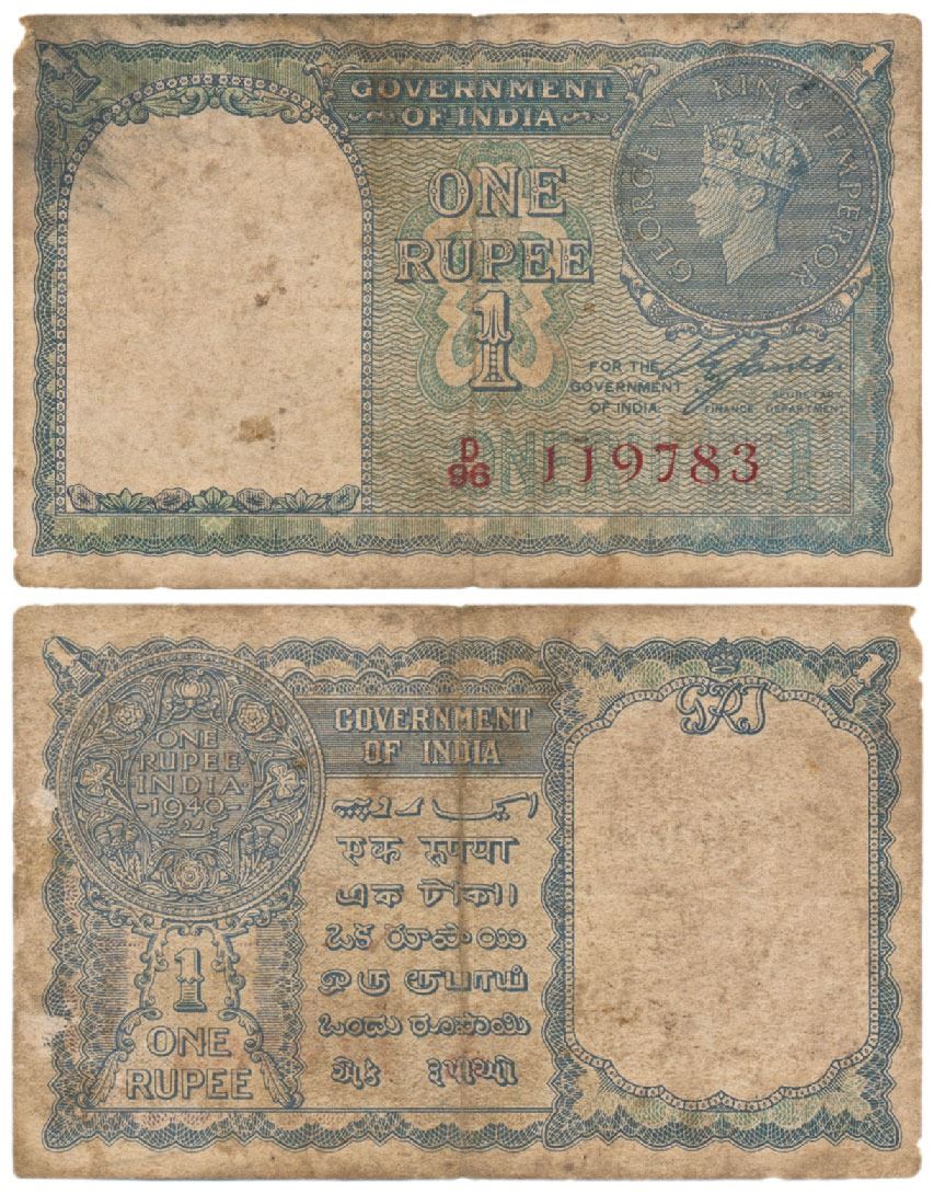 George VI, Rupee 1, 1947, signed C. E. Jones, serial number in red, (J&R 4.1.1D). Fine+, Very Rare. Serial number in red signifies that the note had been issued after 1947.
