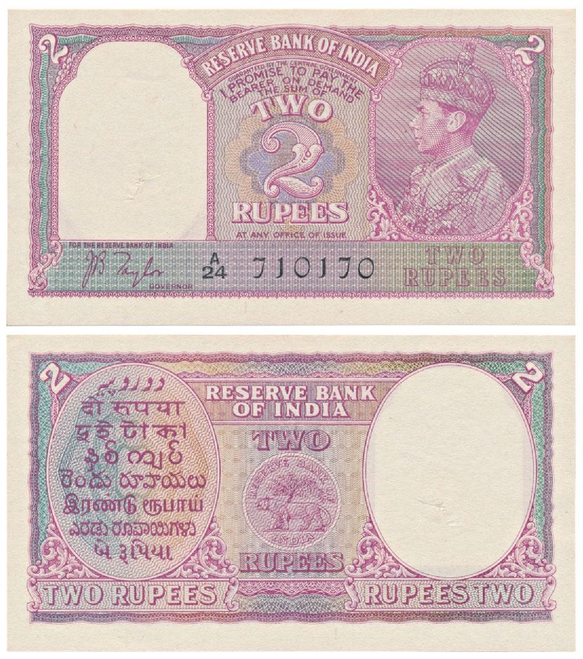 George VI, Rupees 2, 1943, signed J. B. Taylor (J&R 4.2.1). Uncirculated.
