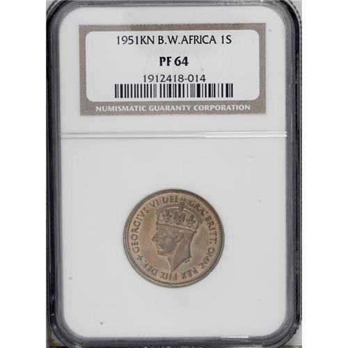 <B>George VI Shilling 1951KN, </B></I>KM28, Proof 64 NGC, fully brilliant.<BR><BR><b>Shipping:</b> Coin/Currency (<a target="_blank" href="http://www.heritageauctions.com/common/shipping.php">view shipping information</a>)