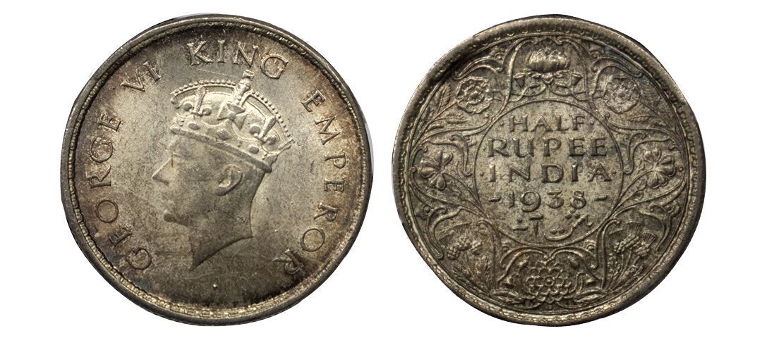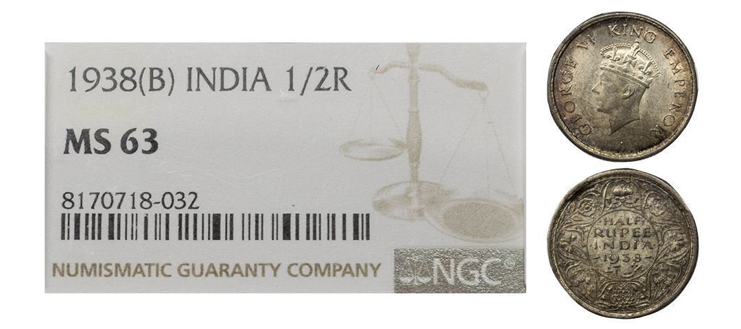 George VI, Silver ½ Rupee, 1938, Bombay Mint, Graded by NGC MS63
