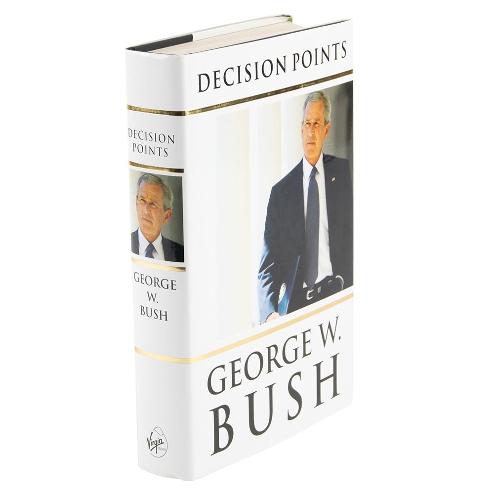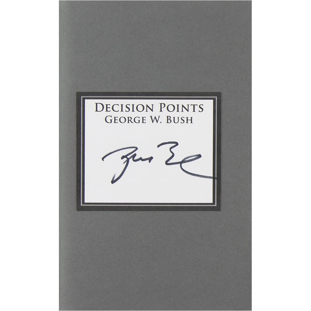 Signed book: Decision Points. First UK edition. London, England: Virgin Books, 2010. Hardcover with dust jacket, 6.25 x 9.5, 497 pages. Signed in black felt tip by George W. Bush on a bookplate affixed to the first free end page. In fine condition.