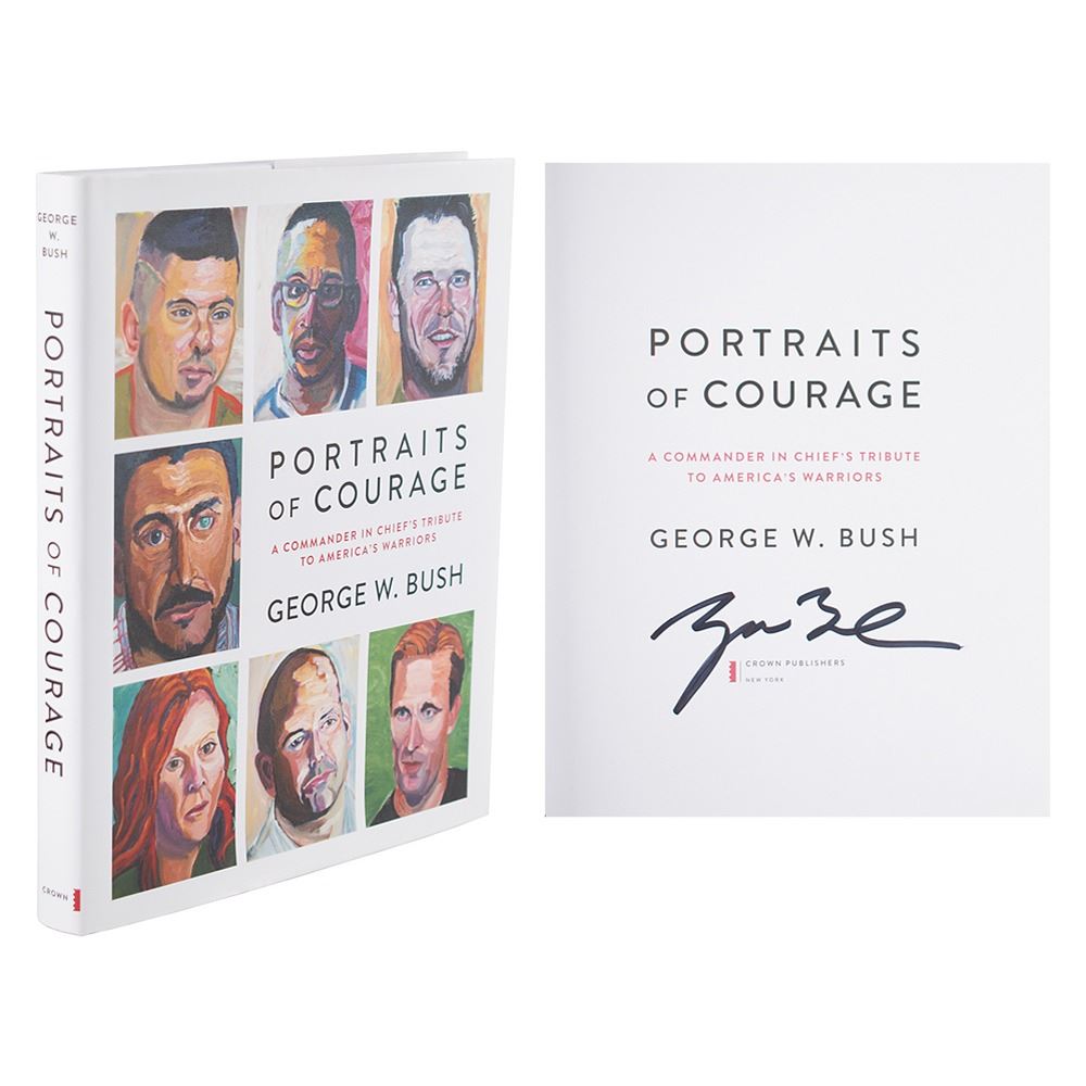 Signed book: Portraits of Courage. First edition. NY: Crown Publishers, 2017. Hardcover with dust jacket, 8.5 x 10.25, 191 pages. Signed on the title page in black felt tip by George W. Bush. In very fine condition. Accompanied by a flyer for the Dallas Barnes & Noble event where it was signed on March 4, 2017.