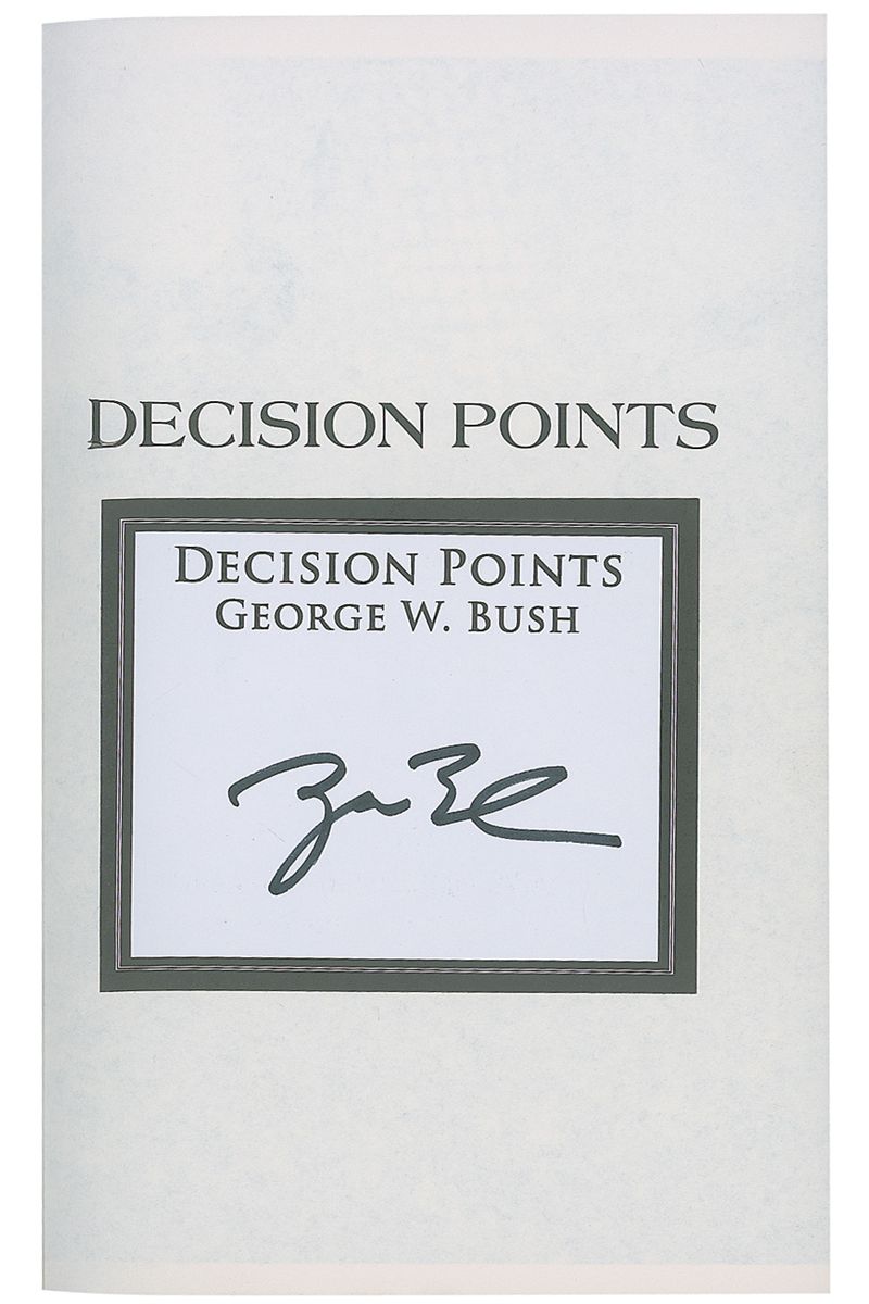 Signed book: Decision Points. First edition, first printing. NY: Crown Publishers, 2010. Hardcover with dustjacket, 6.5 x 9.5, 497 pages. Signed in black felt tip on a bookplate affixed to the half-title page. In fine condition, with a bit of light wear to dustjacket and a trivial bump to lower right front corner.