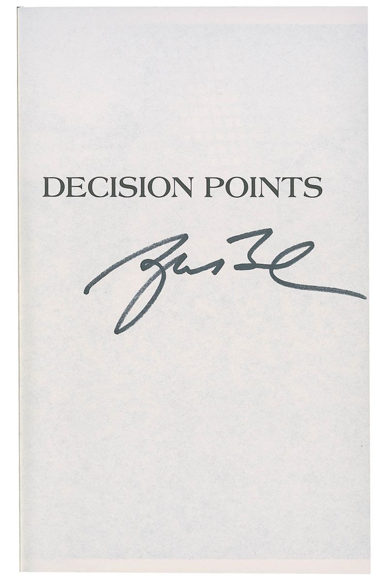 Signed book: Decision Points. Later printing. NY: Crown Publishers, 2010. Hardcover with dustjacket, 6.5 x 9.5, 497 pages. Signed on the half-title page in black felt tip. In fine condition.