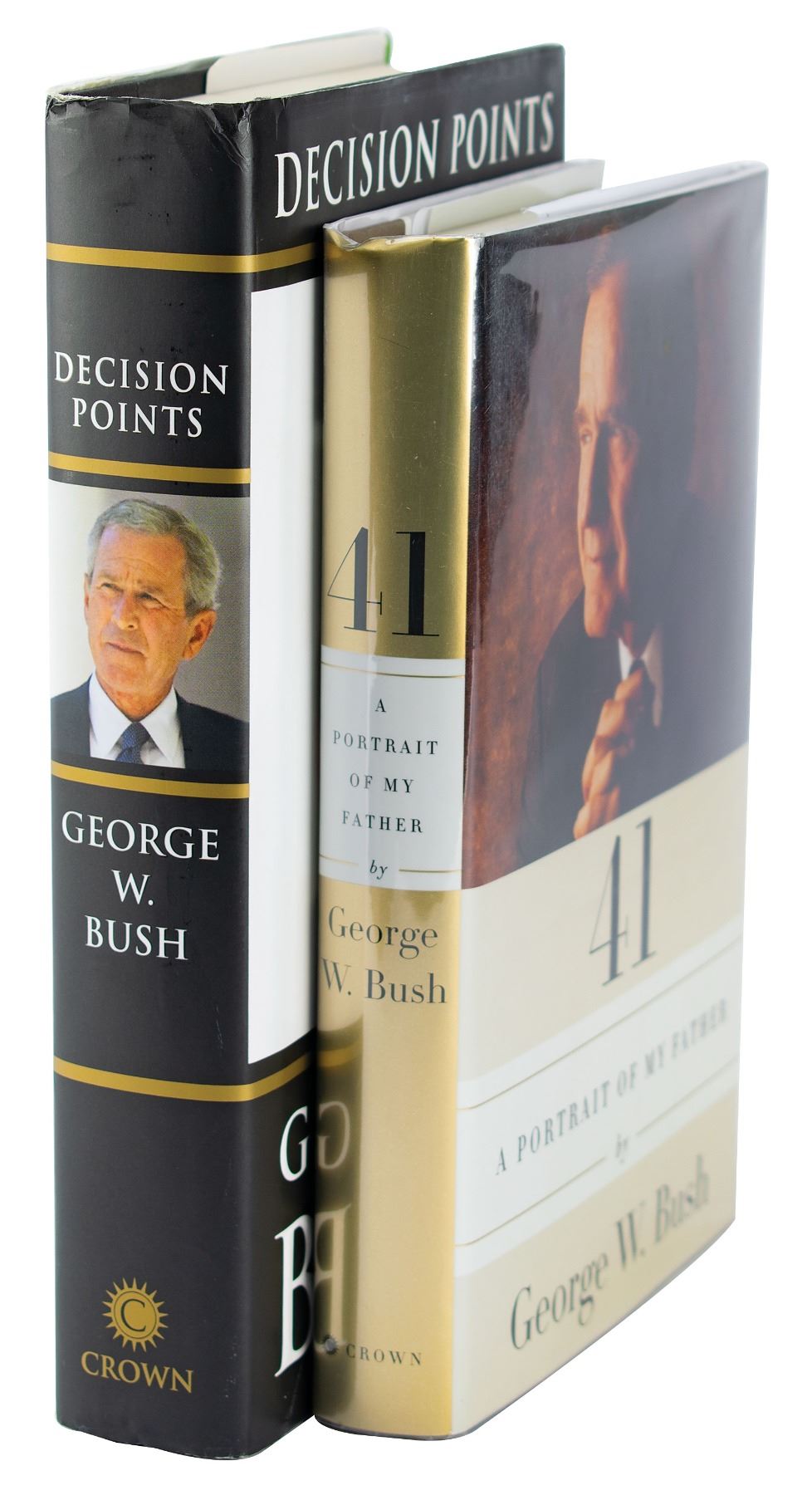 Two books signed by George W. Bush: Decision Points (first edition), hardcover with dust jacket, signed on a bookplate in black felt tip; and 41: A Portrait of My Father (first edition), hardcover with dust jacket, signed on a free end page in black felt tip. In overall fine condition.