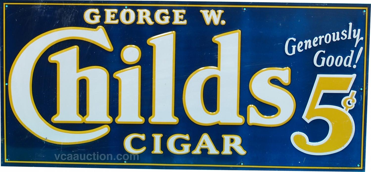 George W. Childs 5 Cent Cigar Embossed Tin Sign, "Generously Good" - 36" x 17"