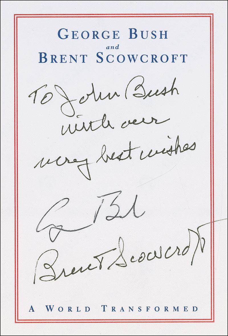 Two bookplates, one signed in black felt tip by George Bush and Brent Scowcroft (adding “To John Bush, with our very best wishes”; and the other also signed in black felt tip by George W. Bush. In fine condition.