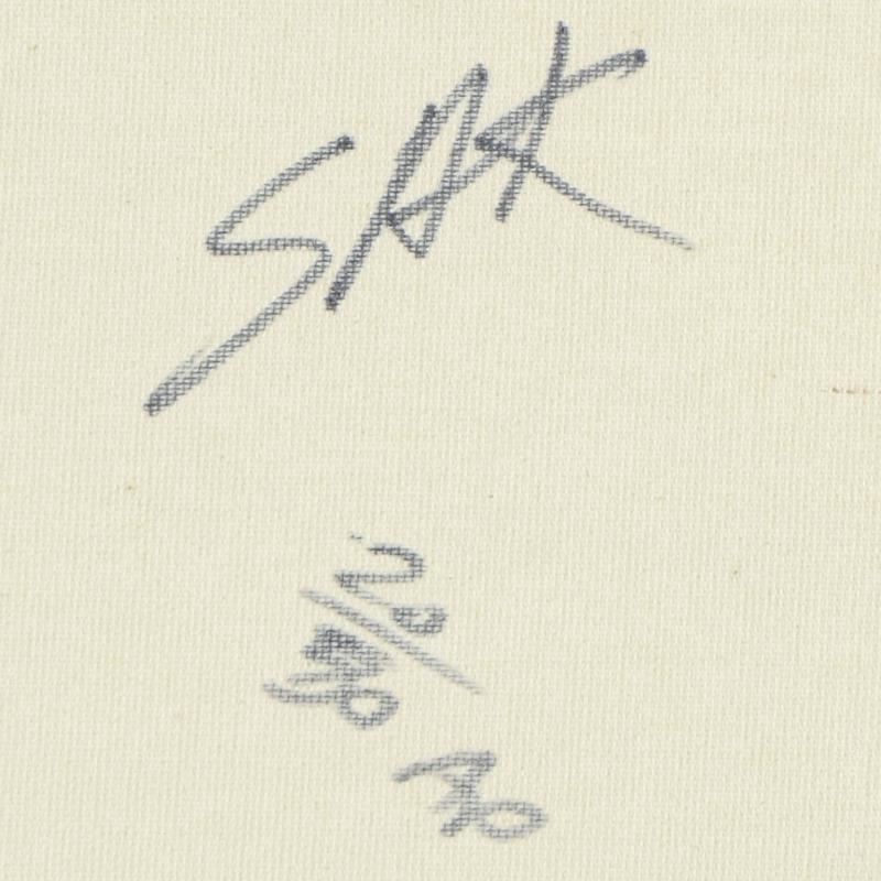 "George Washington" is a limited edition hand pulled silkscreen on canvas by Andy Warhol protege Steve Kaufman (1960-2010). This piece is AP numbered 20/50 and hand signed inverso. Includes letter of authenticity. As is common with Kaufman's works, this piece may have perceived minor flaws, but is in overall good condition. Measures approx. 20" x 20" (image). There is minor creasing in the border area (from being previously stretched) that will be concealed when re-stretched.