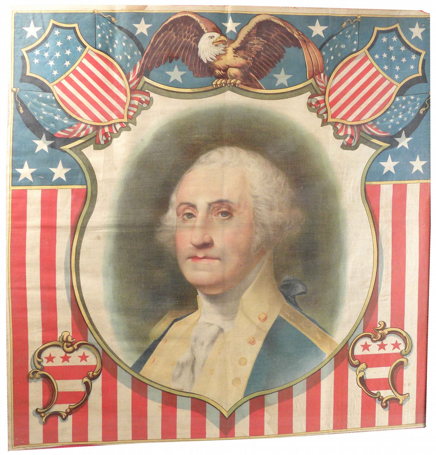 George Washington Linen Pillow Cover. Beautiful color and graphics. Some very light staining otherwise very good condition. 22 inches square.