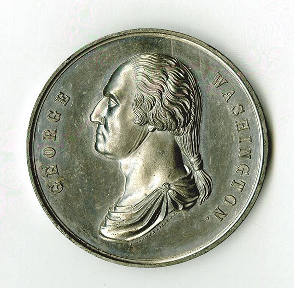 Virginia. George Washington high relief bust on obverse, Mount Vernon. F.B. Smith & Horst NY on obverse, F.B. Smith F. N.Y. on reverse. Nice. 63mm. White metal.