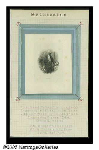 <B>George Washington Vignette.</B></I> This is the standing Washington Vignette that the head was lifted from for the Third Issue 3¢ Note. It's beautifully, privately mounted with additional information on the mount.