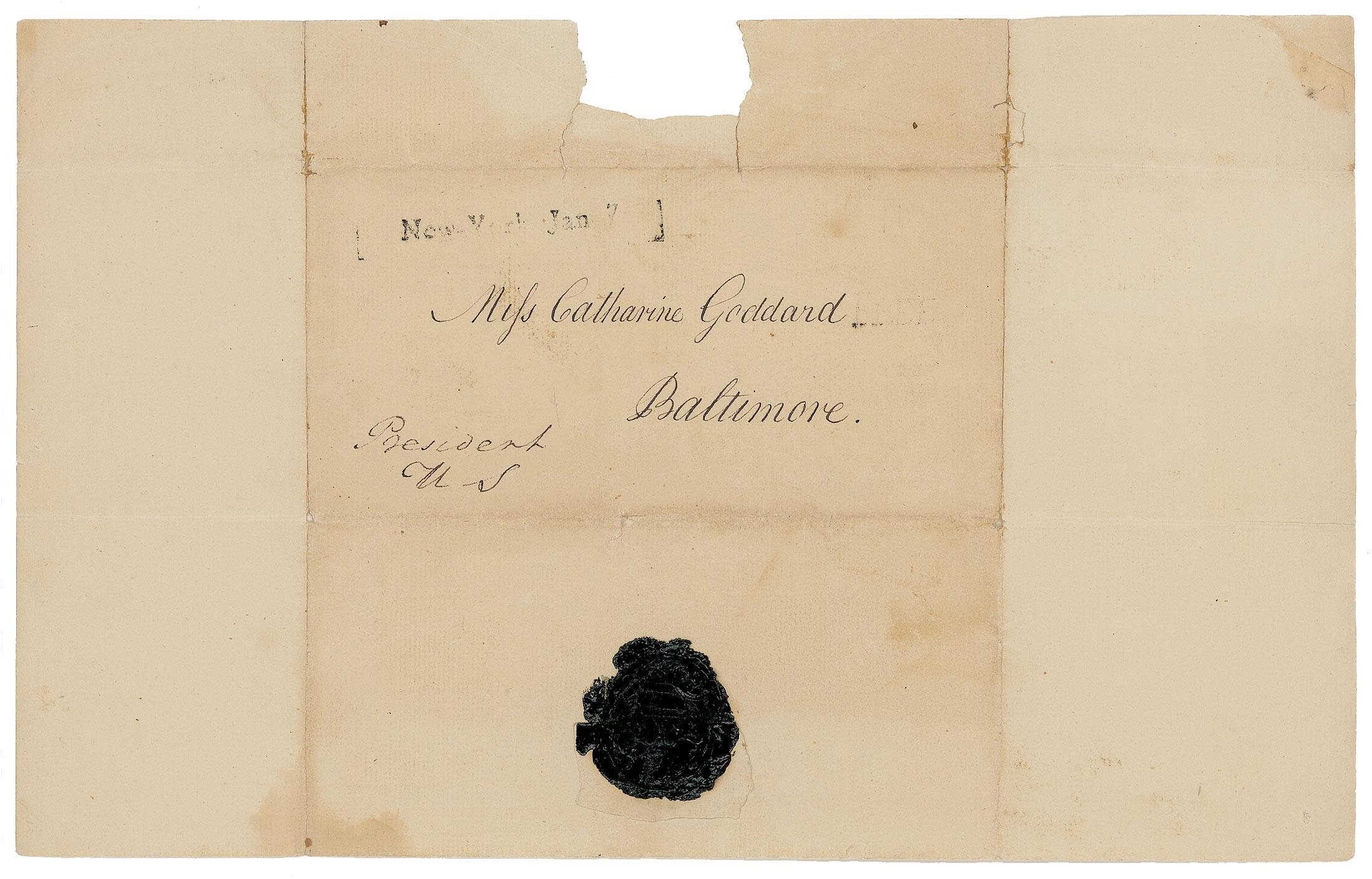 In very good condition, with well done professional repairs and restoration to intersecting mailing folds on front of letter, vertical folds through two letters of signature, scattered toning (heaviest to a panel passing through two-thirds of the signature), and a couple of small tears and surface loss at fold junctions.