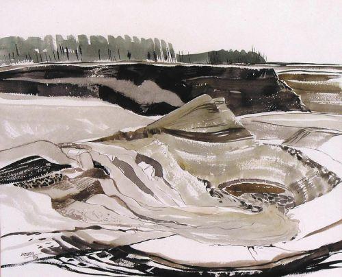 GRAVEL PIT AT CLAVERKAR, EDMONTON; 1956 - Watercolour - on paper - <Br>14 ins. X 17.25 ins.