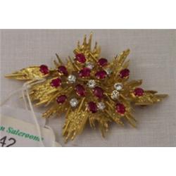 George Weil 18ct gold and platinum ruby and diamond set brooch, signed Est.: £1000 - £1250...