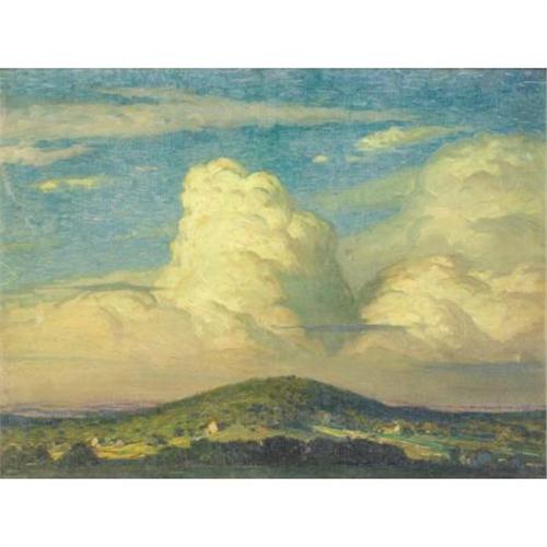<B>GEORGE WILLIAM SOTTER (American, 1879-1953)</B></I><BR><I>Giants in the Sky</B></I>, 1930<BR>Oil on canvasboard<BR>12 x 16 inches (30.5 x 40.6 cm)<BR>Signed lower right: <I>G.W. Sotter 1930</B></I><BR> <B>Condition Report:</B> Surface grime, but otherwise in excellent, original condition.<BR><BR><b>Shipping:</b> Requires 3rd Party Shipping (<a target="_blank" href="http://www.heritageauctions.com/common/shipping.php">view shipping information</a>)