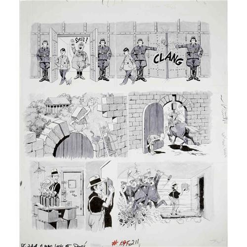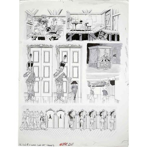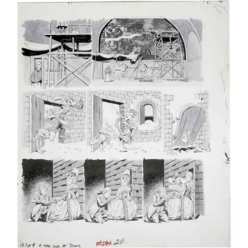 <B>George Woodbridge - Mad #211 Complete 4-page Story "A Mad Look at Doors" Original Art (EC, 1979).</B></I> These hilarious George Woodbridge door gags will <I>floor</B></I> you. Detailed in ink, with greytone washes, each page has an image area of 16.5" x 18", and the art is in Excellent condition. <I>From the Mad Magazine Archives</B></I>.