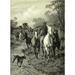 oil on canvas, grisaille style, signed, "Gypsy caravan", 41 x 30 cm