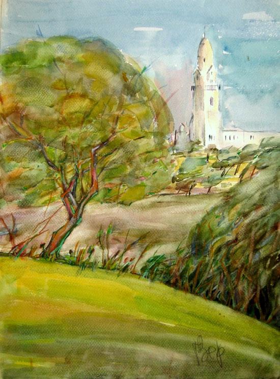 George Zernitzki, Israeli Art, B. 1942, Landscape in Jerusalem, Watercolor, 48x36cm, Signed., , , , Unframed.,