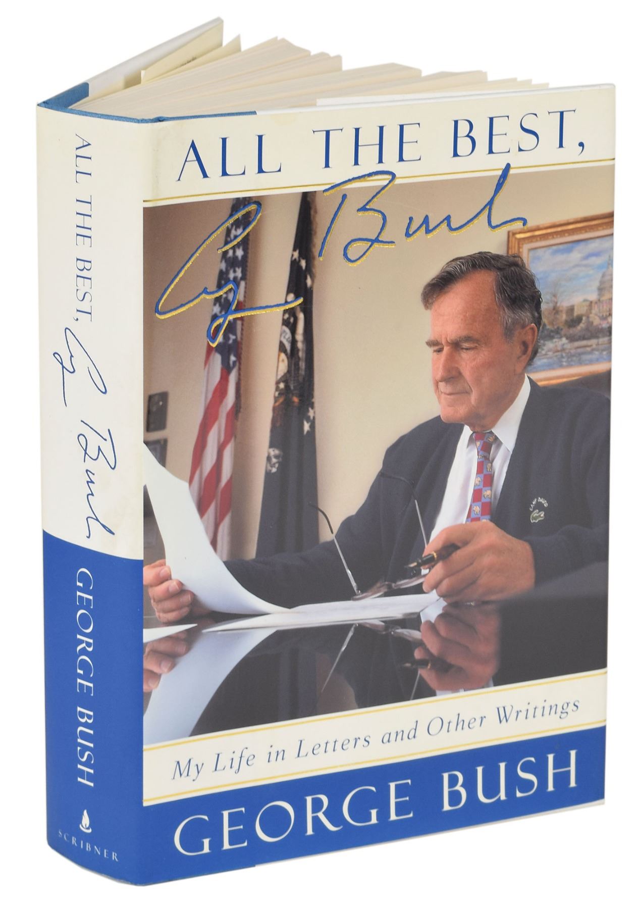 Two books: a copy of All the Best, George Bush, hardcover with dust jacket, signed on a bookplate affixed to the half-title page in black ballpoint, "All the best, George Bush"; and a first edition of Barbara Bush: A Memoir, hardcover with dust jacket, signed on a bookplate affixed to the first free end page in blue ink, "Barbara Bush." In overall fine condition.