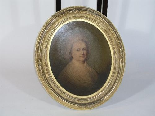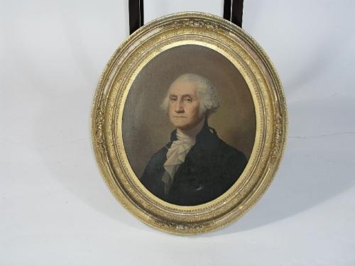 Two portraits of George Washington and his wife, oil on canvas, no signature, framed in gold, Middleton & Co., Cincinnati, OH, 15 3/4" by 12 1/2"