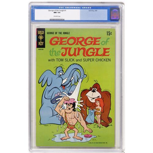 <B>George of the Jungle #1 (Gold Key, 1969) CGC NM 9.4 Off-white pages.</B></I> Overstreet 2006 NM- 9.2 value = $215. CGC census 2/07: 6 in 9.4, none higher.<BR><BR><b>Shipping:</b> Comics - Slabbed (certified) (<a target="_blank" href="http://www.heritageauctions.com/common/shipping.php">view shipping information</a>)