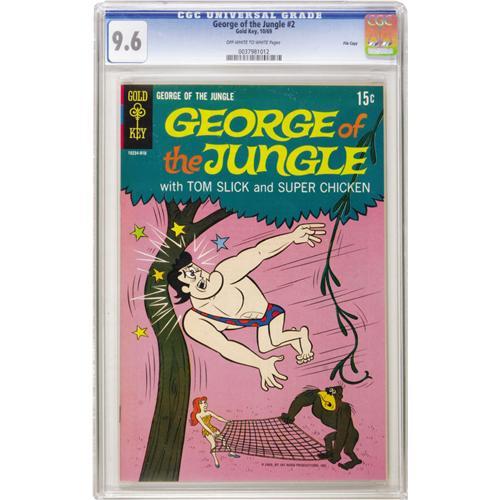 <B>George of the Jungle #2 File Copy (Gold Key, 1969) CGC NM+ 9.6 Off-white to white pages.</B></I> Overstreet 2006 NM- 9.2 value = $130. CGC census 10/06: 5 in 9.6, none higher.<BR><BR><b>Shipping:</b> Slabbed Comic (<a target="_blank" href="http://www.heritageauctions.com/common/shipping.php">view shipping information</a>)