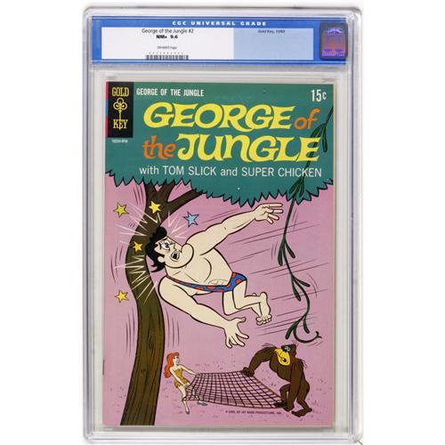 <B>George of the Jungle #2 (Gold Key, 1969) CGC NM+ 9.6 Off-white pages.</B></I> Overstreet 2006 NM- 9.2 value = $130. CGC census 2/07: 5 in 9.6, none higher.<BR><BR><b>Shipping:</b> Comics - Slabbed (certified) (<a target="_blank" href="http://www.heritageauctions.com/common/shipping.php">view shipping information</a>)
