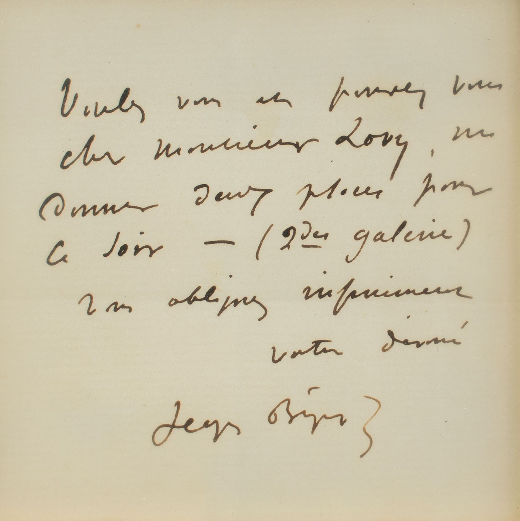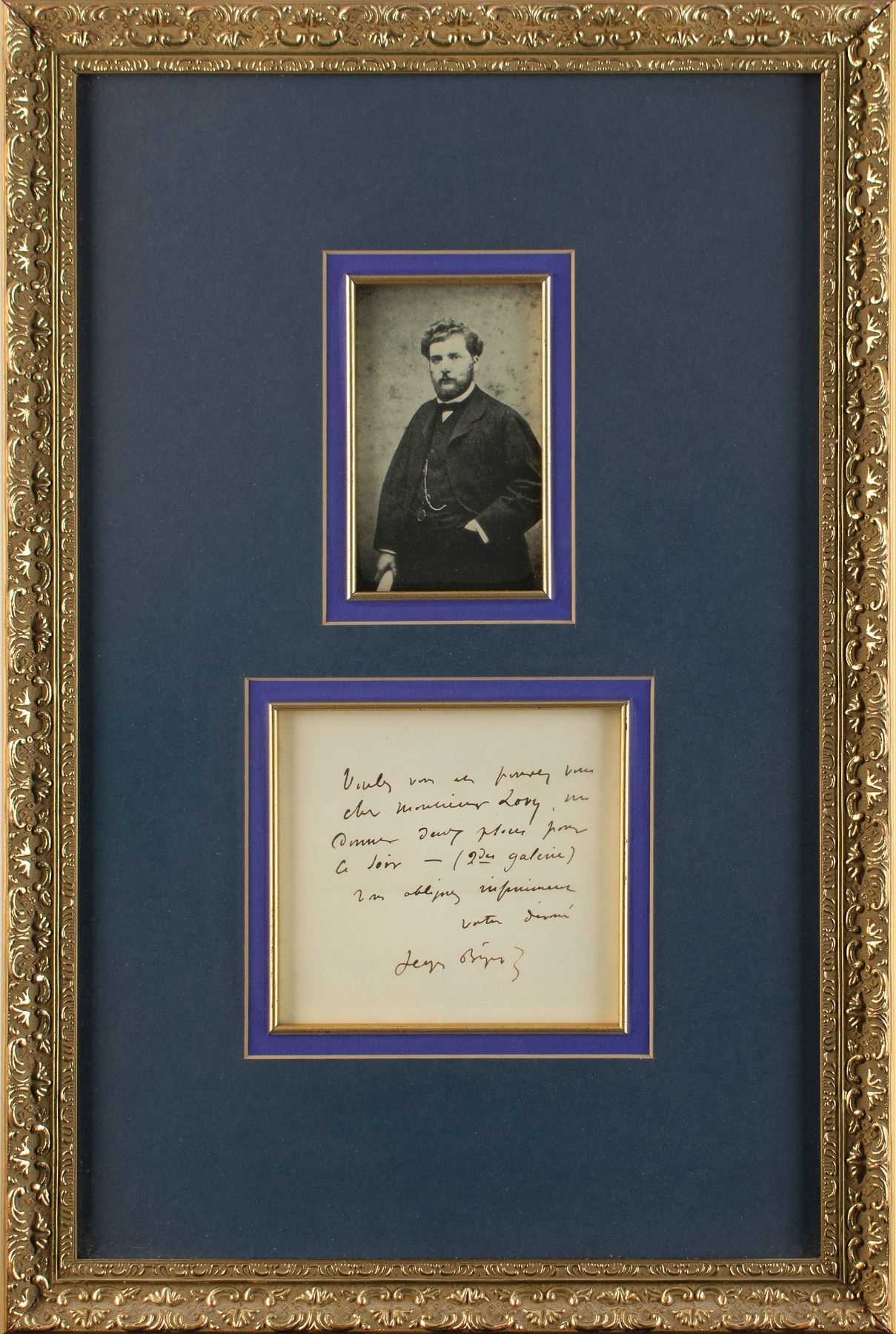 ALS in French, one page, 5 x 4.5, no date. In part (translated): "Would you…dear Mr. Lovy give me two seats for this evening–(2nd Gallery).” Handsomely double-matted and framed with a portrait to an overall size of 13 x 19.25. In fine condition.
