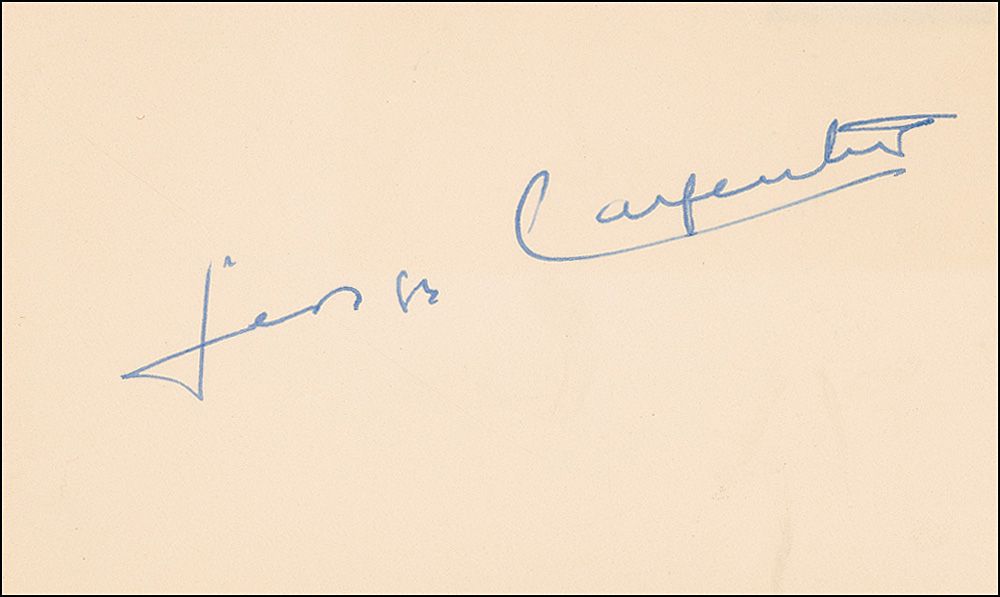 Vintage fountain pen in-person signature, “Georges Carpentier,” on an off-white 5 x 3 card. In fine condition, with some mild toning.