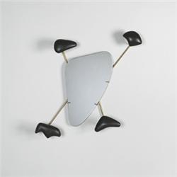 Georges Jouve mirror Asselbur France, c. 1950 ceramic, brass, glass 22"w x 4.25"d x 23"h