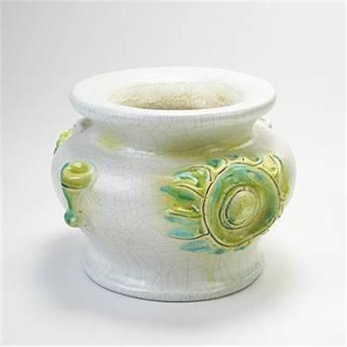 Georges Jouve vessel France, c. 1949 glazed stoneware 11 dia x 7.75 h inches Signed with incised artist's cipher to underside.