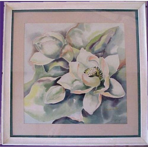 Title: "CAMELLIAS"<p>Artist: Georges Le Duc<p>Age: 1940's<p>Medium: Watercolors<p>Art Size: 17" x 17"<p>Frame: 24 " x 24", Double matted and framed under glass in vintage 1940 style frames.<p>Condition: Art is in excellent condition. Frame and glass in very good to excellent condition with light surface marks.<p>    *Signature: Signed in paint by the artist. Painting #1 is signed lower right; Painting #2 is signed lower left.<p>Notes: Two wonderful companion watercolors, so reminiscent of the 1940's, in pale creams, pinks, and greens. The artwork is soft and romantic, with excellent coloration and detail. One bid covers both pieces of art.<p>One price buys both framed watercolors!