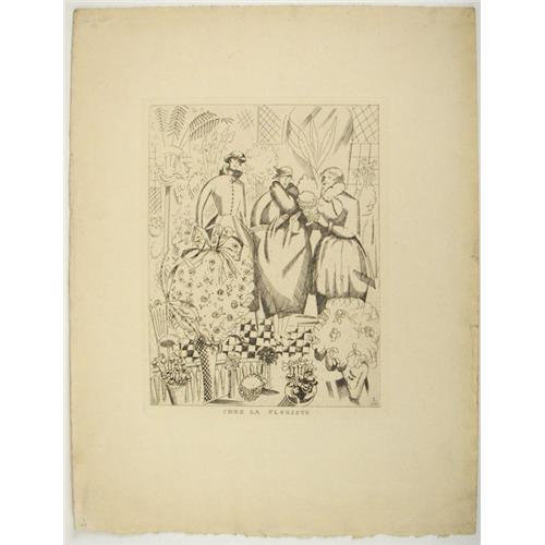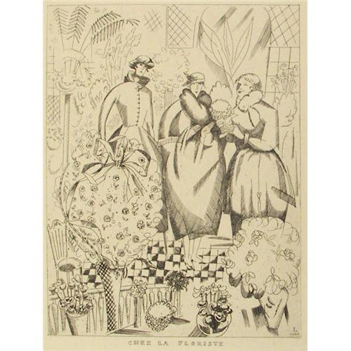 Georges Lepape (1887-1971) Engraving, "Chez La Floriste", 1920, image size 7 1/4" x 5 1/2", signed in plate
