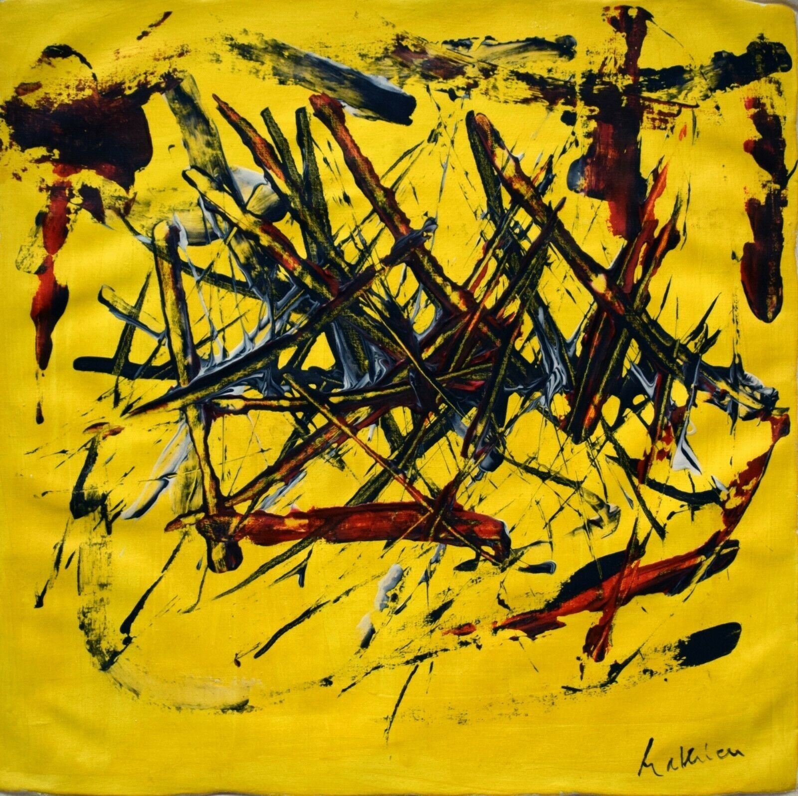 Georges Mathieu is considered one of the fathers of European lyrical abstraction, a trend of informalism. His early abstract work consists of amorphous shapes and experimentation with drip techniques.