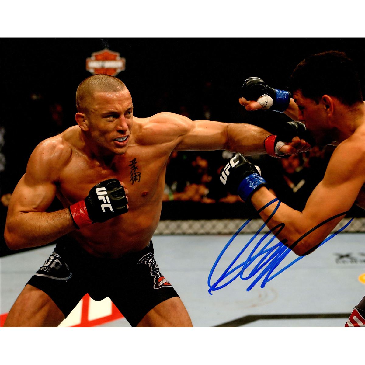 Georges St. Pierre signed UFC MMA punching action 8x10 photo. Item comes with a Schwartz Sports Memorabilia tamper-proof numbered hologram and Certificate of Authenticity which can be verified online.