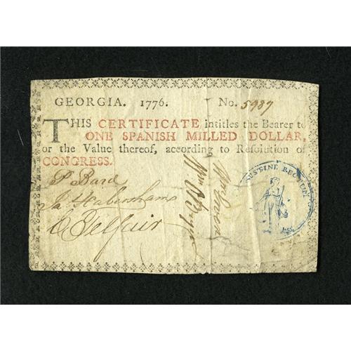 Georgia 1776 $1 Very Fine. The margins are a bit