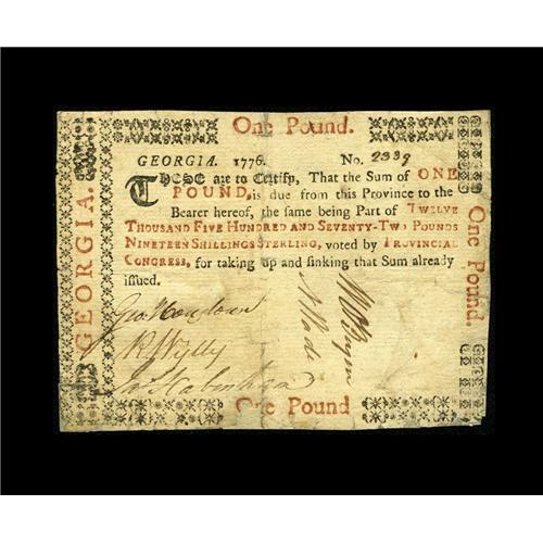 Georgia 1776 $1 Very Fine. This is the first time we h