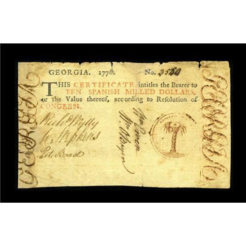 Georgia 1776 $10 Very Fine. A handsome enough note, but