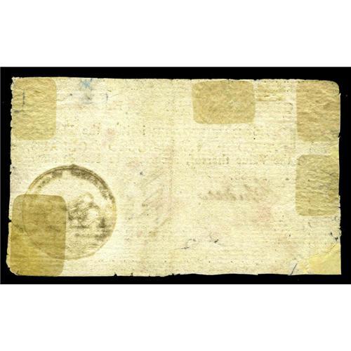 <B>Georgia 1776 $2 Very Fine.</B></I> This is a rare note in any grade. All five signatures on this Georgia note are bold and legible. The orange floating jugs vignette is bright, and some of its original embossing is intact. Five old stamp hinges and a small piece of early tape are used on the back to reinforce the edges.