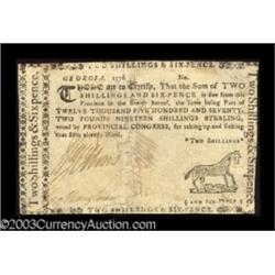 <TABLE cellSpacing=0 cellPadding=0 width="100%" bgColor=#000000 border=0><TBODY> <TR><TD width="100%"><TABLE cellSpacing=1 cellPadding=3 width="100%" border=0><TBODY><TR><TD width="100%" bgColor=#79735c><FONT face=arial color=#ffffff size=3><B>Description</B> </FONT></TD></TR><TR><TD width="100%" bgColor=#ffffff><FONT face=arial size=2><B>Georgia 1776 2s6d Very Fine, Repaired.</B></I> This is the variety with the denomination printed vertically at both ends of the note. The horse vignette is clean and perfect, and the note gives the appearance of grading better than Very Fine. A number of small edge pieces have been replaced, and a few of the border elements have been partially redrawn, but the job is well done, and this scarce note faces up quite nicely. (800--up) </FONT></TD></TR></TBODY></TABLE></TD></TR></TBODY></TABLE><BR><TABLE cellSpacing=0 cellPadding=0 width="100%" bgColor=#000000 border=0><TBODY><TR> Important notice: Heritage usually auctions material at the rate of 200-250 lots per hour. On some occasions eBay Live bid software or the Internet may not be able to keep up with the pace of the auction. We recommend placing a realistic absentee bid now as insurance to avoid disappointment. Occasionally the auctioneer may eliminate or reject an eBay Live bid, and the auctioneer may also reopen a lot after the close of the eBay live bidding (usually because we missed an audience bid), and may reject your bid even if it shows you as the winning bidder. By bidding via eBay Live, you agree that Heritage may award the lot to another bidder at its sole discretion under the circumstances described above or any other reasonable circumstances. Also please note that all Heritage lots purchased through eBay Live carry a 20% Buyer's Premium. Please make sure you read the Terms and Conditions before you bid.</TR></TBODY></TABLE>