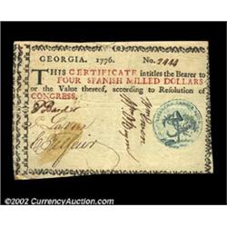 Georgia 1776 $4 Choice About New. A spectacular piece of Georgia currency, with a razor-sharp blue C