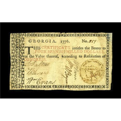 Georgia 1776 $4 Very Good-Fine. The signatures are shar