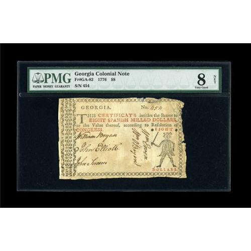 Georgia 1776 $8 PMG Very Good 8 Net.