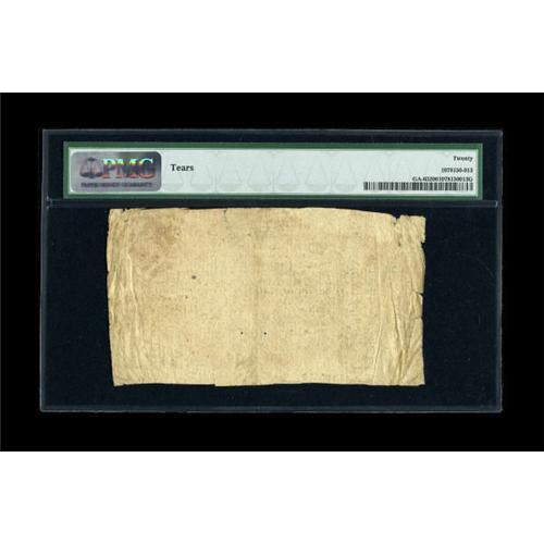 <B>Georgia 1776 - Denomination on both right and left sides 2s/6d PMG Very Fine 20.</B></I> This scarce note faces up well and the horse vignette and signatures remain strong. The left hand margin is unusually large for the issue.<BR><BR><b>Shipping:</b> Coins & Currency (<a target="_blank" href="http://www.heritageauctions.com/common/shipping.php">view shipping information</a>)