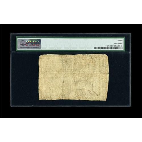 <B>Georgia 1776 - Denomination on both right and left sides 2s/6d PMG Choice Fine 15.</B></I> The last note in an amazing trio of this popular Georgia issue to be offered. All three signatures remain visible including that of William Few, who signed two Georgia issues of Colonial currency and eleven years later, was one of the signers of the United States Constitution. <BR><BR><b>Shipping:</b> Coins & Currency (<a target="_blank" href="http://www.heritageauctions.com/common/shipping.php">view shipping information</a>)