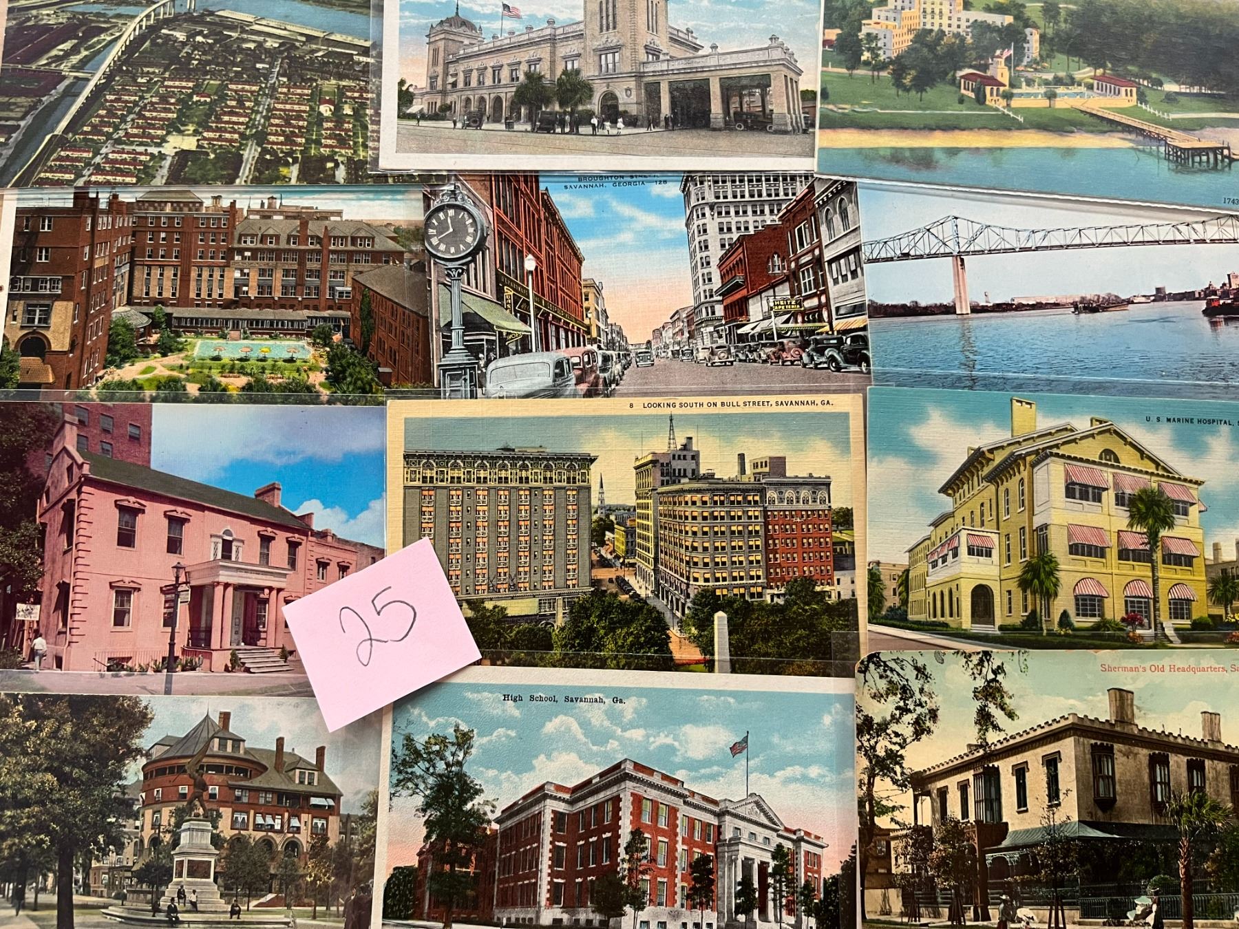 Mostly sorted. Over 10 towns. Rome, Savannah, Sea Island & More. Early to standard size chrome.