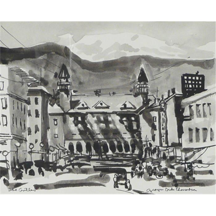 Georgia Drake Edmondson, Inkwash "The Antler's" Signed lower right 5" x 7"